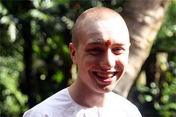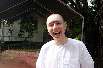 Aubrey set a fine example while he was here, always in a bright mood, ever ready to serve and frequently found in the temple soaking up the vibration of the Deities. He says he returns now with a new sense of determination to strengthen his spiritual practice at home.