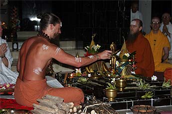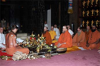 Today they enjoyed the 6:00 a.m. homa followed by a wonderful talk by His Holiness, Bodhinatha Veylanswami. They then attended the 9:00 a.m. Siva abhishekam which was followed by a tour of the Iraivan temple site and grounds which they all thoroughly enjoyed. At about 11:30 am they were invited into the Guru Temple where they were blessed to receive the darshan of Bodhinatha.