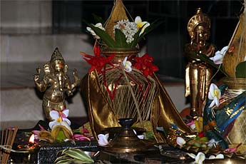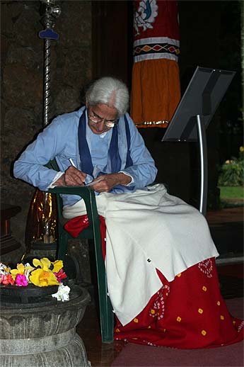 Jyoti and Nishi Bhatia, their daughter Rani Bhatia, and Jamna Taneja (Nishi's mother) from Dallas, Texas. All are originally from near New Delhi and here on a week['s pilgrimage visiting the Aadheenam. There were joined by another young couple visiting this morning (on the right)