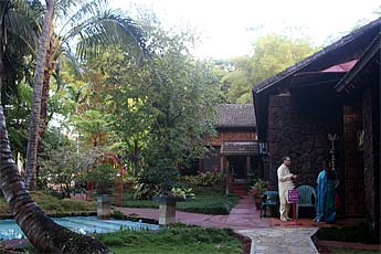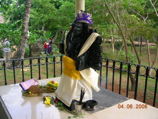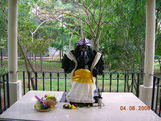 Now he is well adjusted and happily sits it the bushes nearby, watching all the visitors go by, waiting for Ceyonswami to come out of the temple at noon.