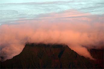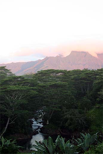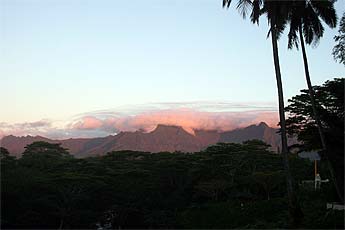 Looking toward the mountains at dawn, just before going to the temple early this morning.