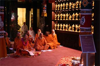 Inside Kadavul, monks are chanting Sri Rudram before the Chitra puja begins.