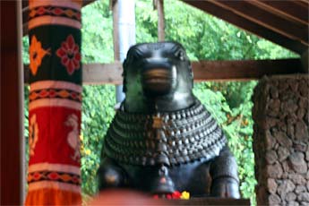 Stepping outside, the early morning light is the best time for catching an image under the banyan tree. Way inside is Lord Shanmuga, six-faced Murugan. He is a stunning first impression for visitors who arrive at our humble front entrance, not knowing what to expect and slowly stepping into a spiritual wonderland as they move up the path.