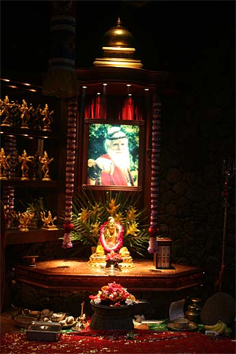 Here is Ganapu, outside in front of the temple. He likes to loiter nearby in the mornings when his caretaker Paramacharya Ceyonswami is on vigil from 9 AM to noon and often attends the balipeedam puja.