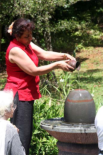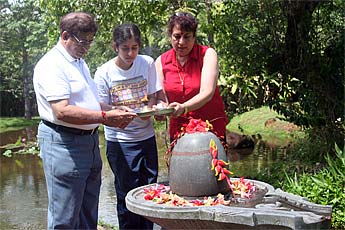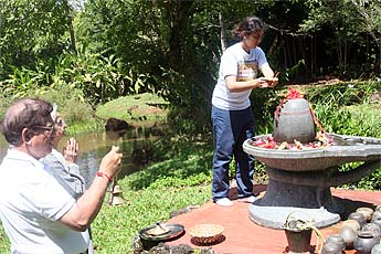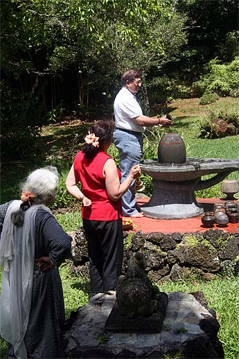 Jyoti and Nishi Bhatia returned with their beautiful daughter Rani, and her grandmother Mrs. Taneja. They came to enjoy the morning Siva puja and another tour of the grounds. Saravananathaswami took them for morning worship at Narmada lingam.