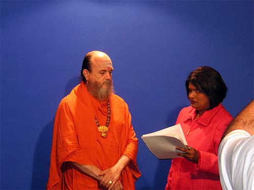 As part of the ceremony, a talk of Bodhinatha is read to the public every month. Here Kulapati Manon uses one of those talks from Hinduism Today.