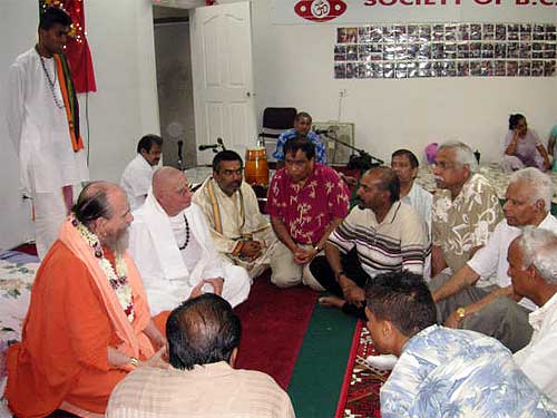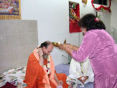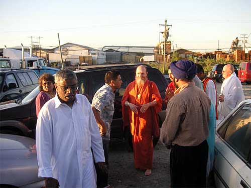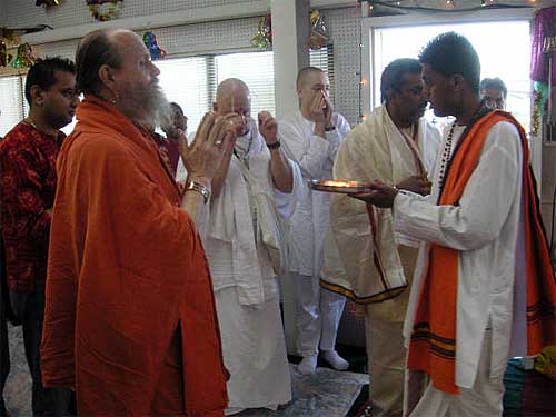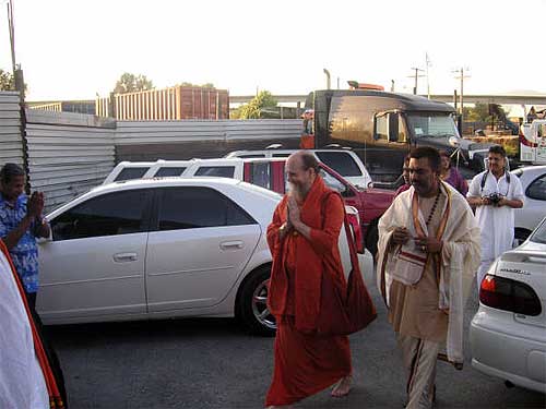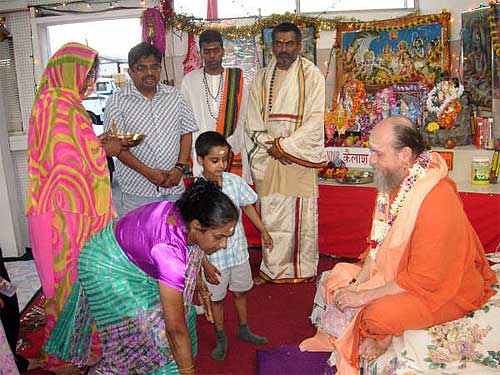 A couple arrived for the morning puja at the Kadavul Siva Temple, Rama and Sastry Ambatipudi from California, previously Madras. They were joined by a large family from Tennessee, three brothers, Ratilal Patel, Suresh Patel, and Mahesh Patidar and their wives and one sister, all originally from Surat, Gujarat, India.