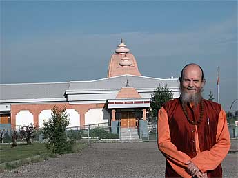 Bodhinatha likes to take an early morning walk while he travels. Here he is in front of the Calgary Hindu Temple which is just a short walk from the hotel. See its website at http://www.calgarymandir.com/