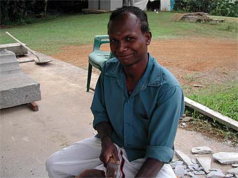 Here is one of our great artisans, Chellaiah, in the process of carving a flower design on a granite roof stone. It takes a lifetime to perfect such a craft and we stood watching in awe as Chellaiah deftly chipped away at his creation.