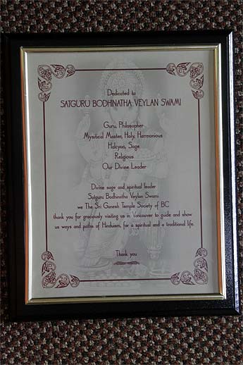 Divine sage and spiritual leader, Satguru bodhinatha Veylanswami, we the Sri Ganesh Temple Society of BC, thank you for graciously visiting us in Vancouver to guide and show us ways and paths of Hinduism for a spiritual and traditional life.