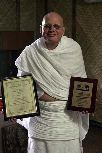 Sadhaka Haranandi is home too. Everyone gained a new appreciation for all the many, many details of our life and temple duties, kitchen, domestic engineering, fund-raising activities and more, that he handles -- because we had to take care of them while he was gone (smile)