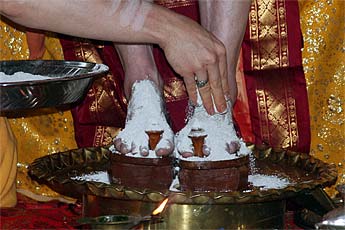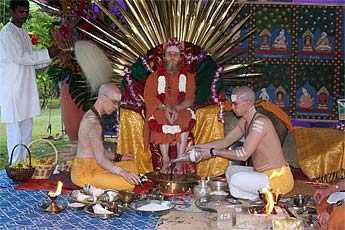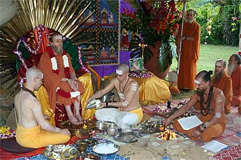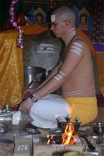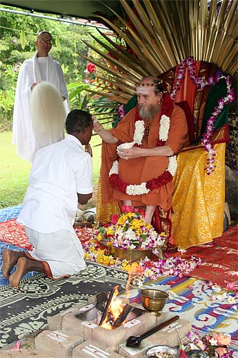 Later in the morning special initiations were conducted in the Guru Peetham. Hitesvara Saravan received his Vishesha Diksha initiation into the performance of daily Siva puja.