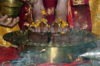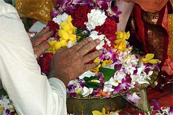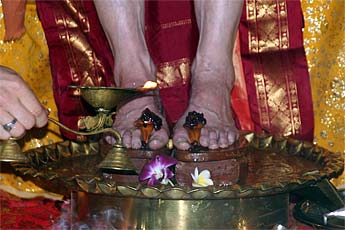 Then this morning at 6:am devotees gather for the puja. We will let the pictures tell the story.