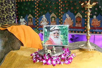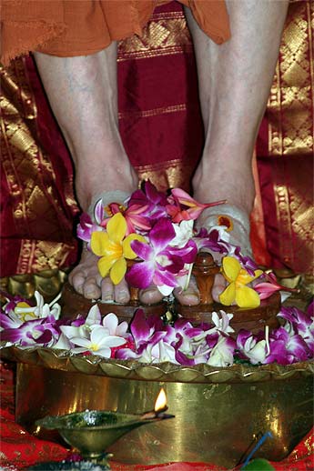 What a glorious day! Guru Purnima day. The day began at 6 a.m. with a magnificent Pada Puja honoring our beloved Guru Bodhinatha Veylanswami. It was an other-worldy atmosphere, pure and spiritually peaceful and serene at the sacred Swayambhu Lingam where the ceremony was performed on San Marga.