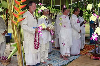 Following this wonderful experience, devotees arrived back at the Kadavul Siva Temple for breakfast. Visitors then began arriving spontaneously and a group was guided down through the gardens to the Iraivan Temple.