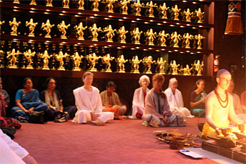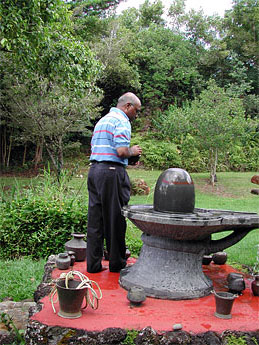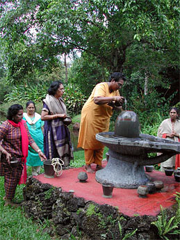 and down the path of the Nayanar Saints to the Narmada Lingam where everyone performed abhishekam.