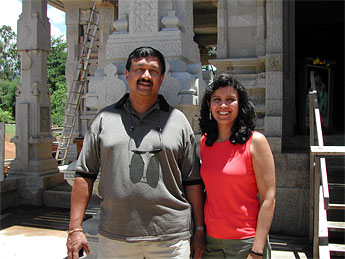 Devyani, Jay and Leena Ved from California in front of the Iraivan Temple . . .