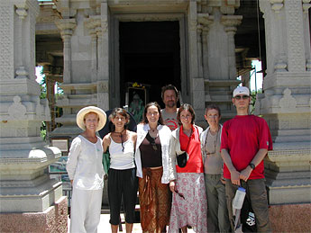 Here is our group of Canadian devotees in front of the Iraivan Temple Sanctum . . .