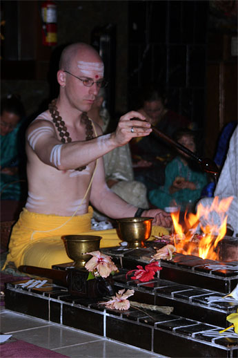 The day began with a 6:00 am Sun One Homa and a wonderful talk by Bodhinatha Veylanswami. A group of devotees visiting from Canada and two from the UK, all originally from Sri Lanka, were present at the ceremony. They had been present when Bodhinatha recently visited Canada.