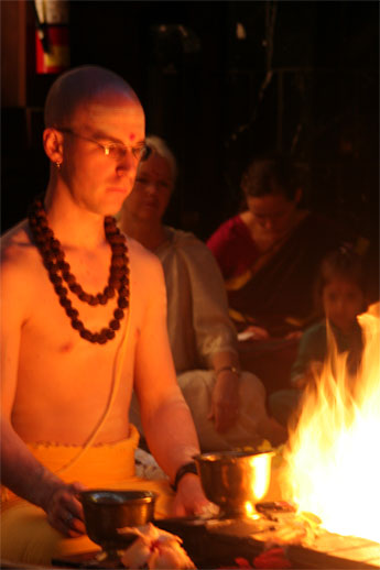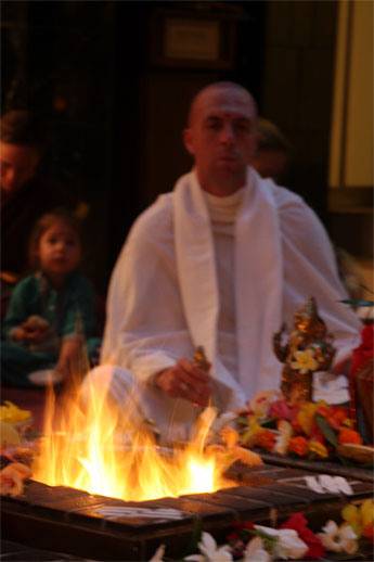 We began another bright new phase today with a homa and a talk from Bodhinatha.