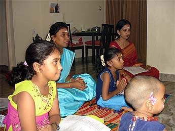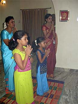 Primeela, Dhanialakshmi and Parvati, waiting for puja...