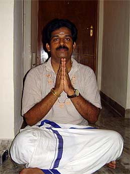 Prostration. Here is Premila Gunalan who is a student in Bharata Nathyam in Chennai.