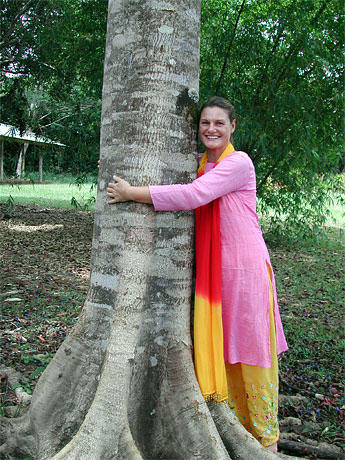 Hugging a rudraksha tree makes one feel peaceful. . .