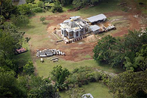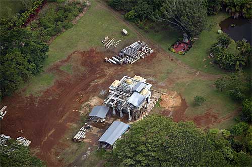 About 85 such containers will take the 10,000-mile journey (Hmmm! That's about a dollar a mile) from India to Kauai to bring all the sculpted stone to the island.