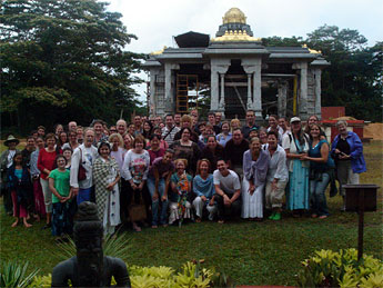 The second group was about 35. One young man happened to be passing by Kadavul after the main puja was done and Ceyonswami was doing abhishekam on Nandi outside. Later the young man asked: