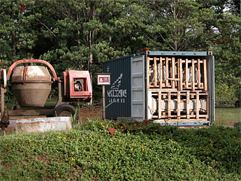 The containers are off loaded onto the foundation, since it happens to be exactly the height of the bed of the container and our forklift canroll inside to do the heavy lifting.