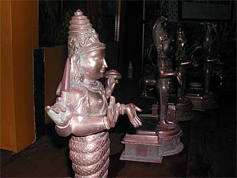 A bath of tamarind water is first used to soak the statues for many hours. They come up with most of the oxidized coat taken off, ready for polishing.