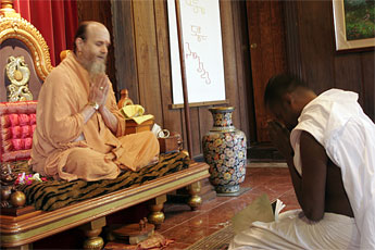 Maruthu Dharmalingam leaves tonight to return to Malaysia. This morning he met for a final darshan with Bodhinatha.