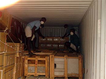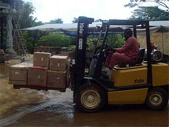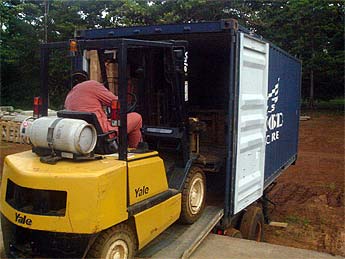 Meanwhile, the team is hard at work unpacking the containers from India.