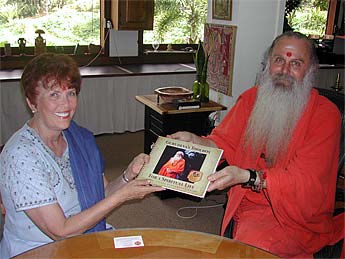 Paramacharya Palansiwami presents her with a beautiful gift -- "Gurudeva's Toolbox for a Spiritual Life."