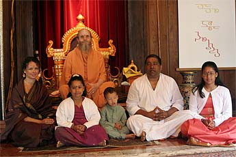 Here is the second and third generation Mardemootoo family, Kulapati Sivakumaran, Kulamata Kavita and children, eldest daughter on the right, Basanti, second daughter Dipanjali with her mother and youngest, son, Jayendra. They have traveled all the way from Mauritius to be here with Kavita's parents (Amala and Deva Seyon) and have some quality time as a family together at the Aadheenam. Here they meet with Bodhinatha.