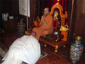 Prostrating to Bodhinatha before the ceremony.