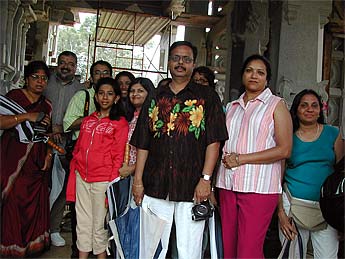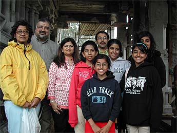 Raj and Himani Dave arrived for the morning abhishekam with their two children Rachna (age 15) and Sivani (age 12). Another family, Geeta and Raj Moolchnadani and their three children, Divya, Priyanka, and Pooja accompanied them. They are all from the same town in Tennessee.