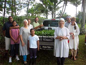 Today's series is a tree planting session. Sivakumaran Mardeemootoo and daughters, Amala Seyon, Durvasa and Isani Alahan, Lila Shaktidevi, and Tandu and Uma Sivanathan gather with a truckful of noni plants for Himalayan Acres. We are guessing that Kavita Mardemootoo is behind the camera.