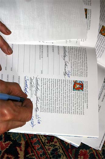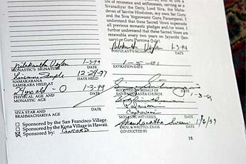 Signatures are placed in the book to signify another two years of service to Lord Siva and to the Sivaguru.