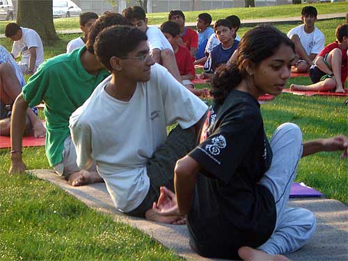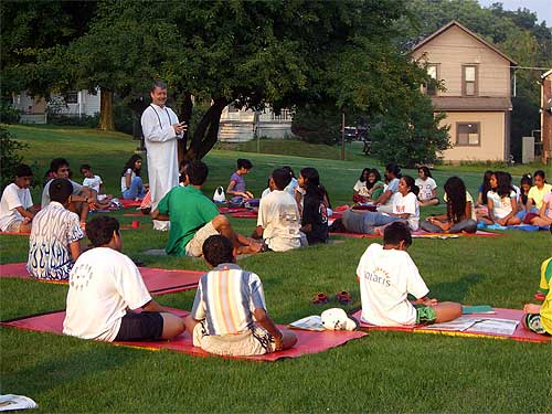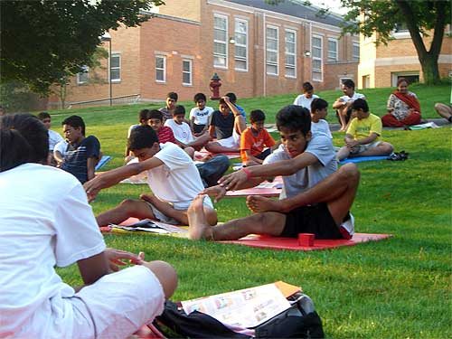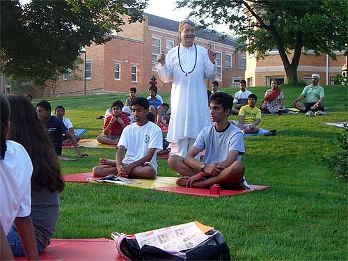 Kulapati Easan Katir sends sends photos from the youth camp in Pennsylvania. A series here on a morning hatha yoga session at the University of Pennsylvania campus.