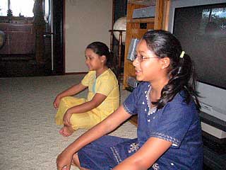 Kulapati Easan Katir sends this photo of the last day of the camp in Pennsylvania. Kartikeya Katir leads youth in a Hatha Yoga demonstration for parents.