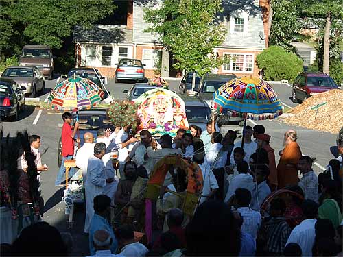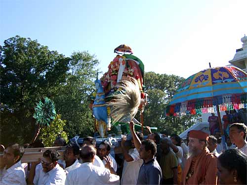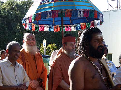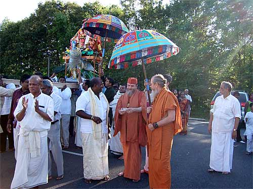We continue today with the final episode of Bodhinatha's journey. Today's episode continues with coverage of the main purpose of the trip: attending the August festival at Maryland Murugan temple. Here is Bodhinatha during the festival parade.