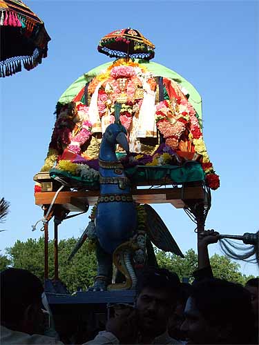 Lord Muruga's utsava Deity was brought out to bless the people of Maryland. Riding on His peacock Lord Muruga began His journey around the temple.