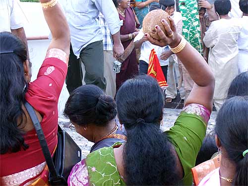 The ladies really enjoyed breaking coconuts for Lord Murugan.