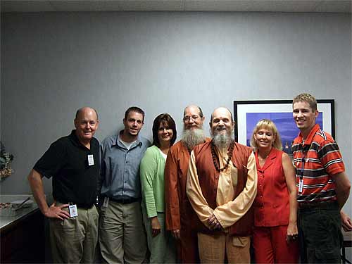 The next day we flew from Washington DC to Kansas City, Missouri. Our first stop was to visit our friends and business associates at Banta Publications where they print Hinduism Today. This is our Hinduism Today printing team. They divide themselves up into groups called "pods" which allows each team to handle hundreds of clients.