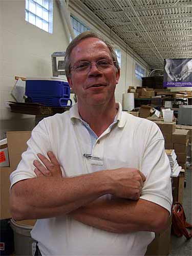 Next we are off to Mail Werx. Meet Rob Sloan. He warehouses our inventory of Hinduism Today magazines, booklets, flyers, pamphlets etc. His company, Mail Werx does our mailings of Innersearch brochures, Mini Mela catalogs, Hinduism Today subscription flyers plus the items listed above. Our second purpose of visiting Kansas City was to visit Rob and his plant.