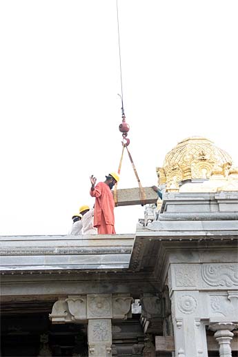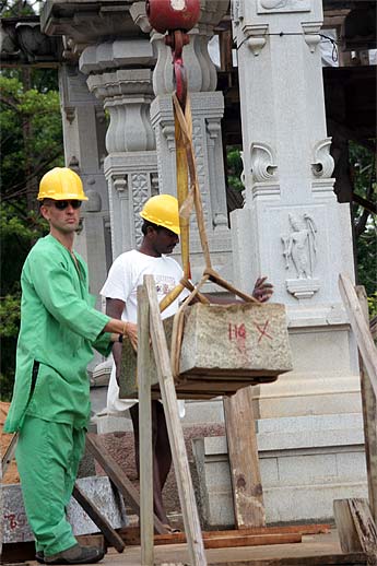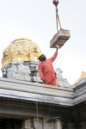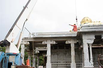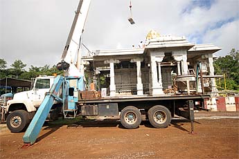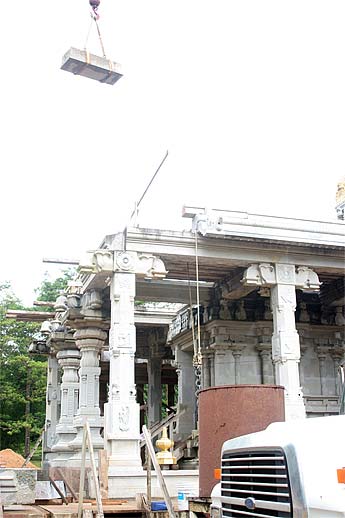 At the Aadheenam today the work continues at the Iraivan site with a stone lift today.