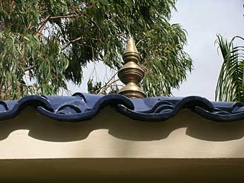 The only brass kumbha on the roof of the small shrine is shining with the rays of the rising sun...