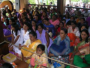 As usual the Mandapam is packed to capacity, leaving barely any sitting space for any latecomer. Most ladies are seated inside now. The air is filled with incense and devotional songs...Everyone participates with intense devotion, feeling so close to the deity at this moment.