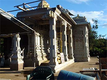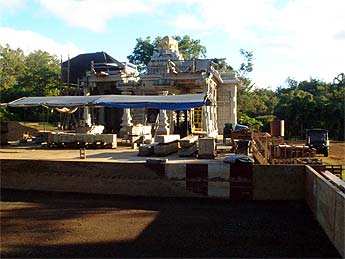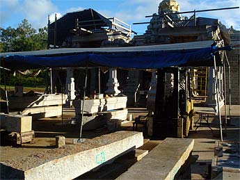Work continued all day in preparation for tomorrow's concrete pour for the Nandi Mandapam